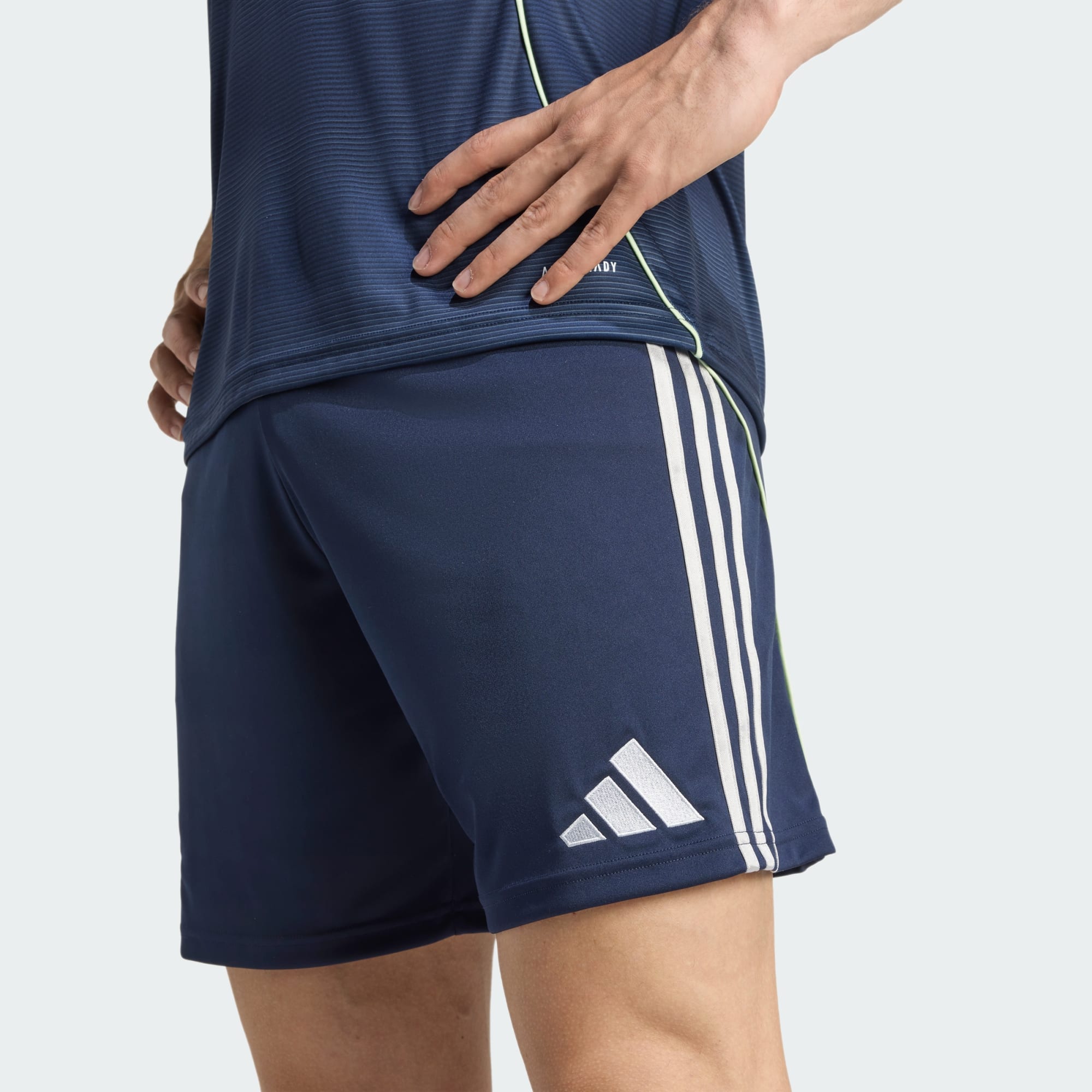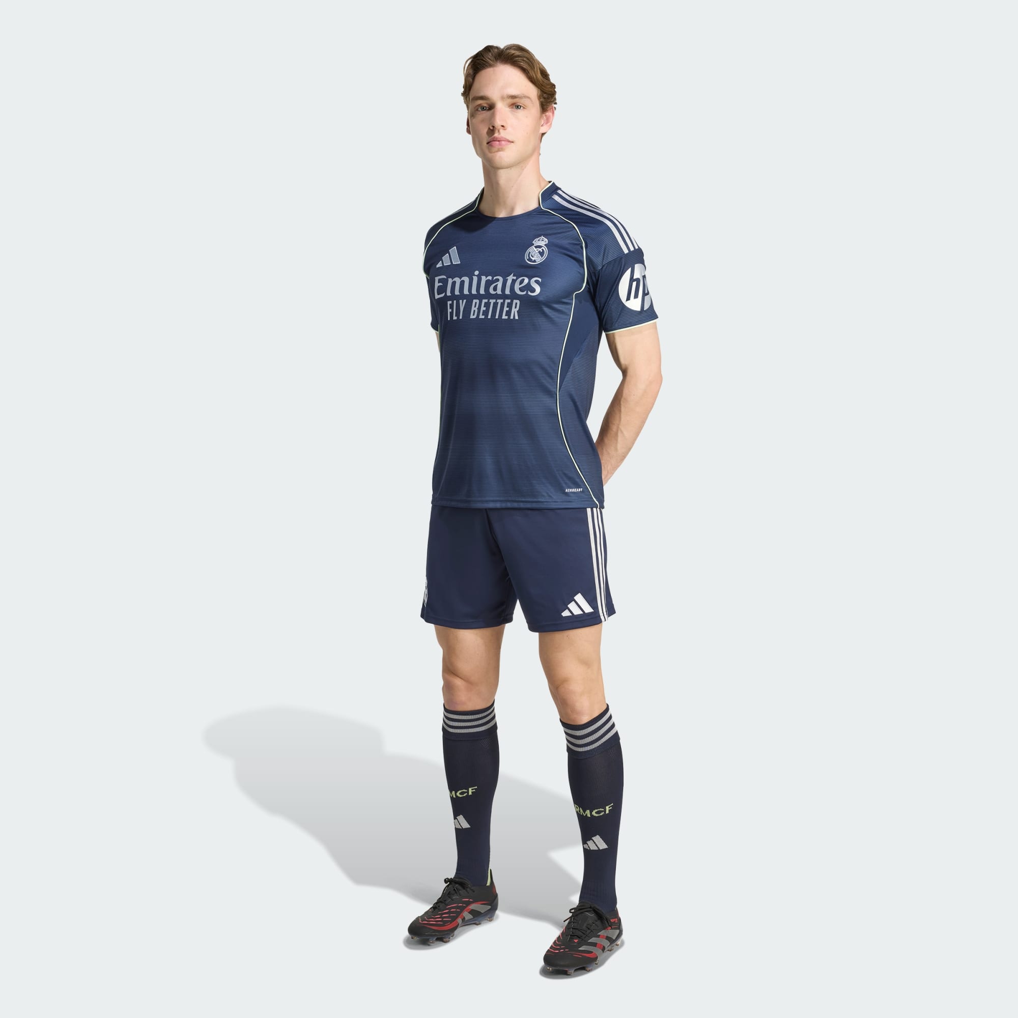 Eine Erinnerung an die Heimat bei Auswärtsspielen. Diese adidas Fußballshorts gehören zur Ausrüstung von Real Madrid, die das renovierte Stadion des Vereins würdigt. Die silberfarbenen Details in Metallic-Optik spiegeln die glänzende Fassade des Bernabéu wider und heben sich vom kräftigen Marineblau ab. AEROREADY sorgt dabei für Komfort und absorbiert problemlos die Feuchtigkeit.