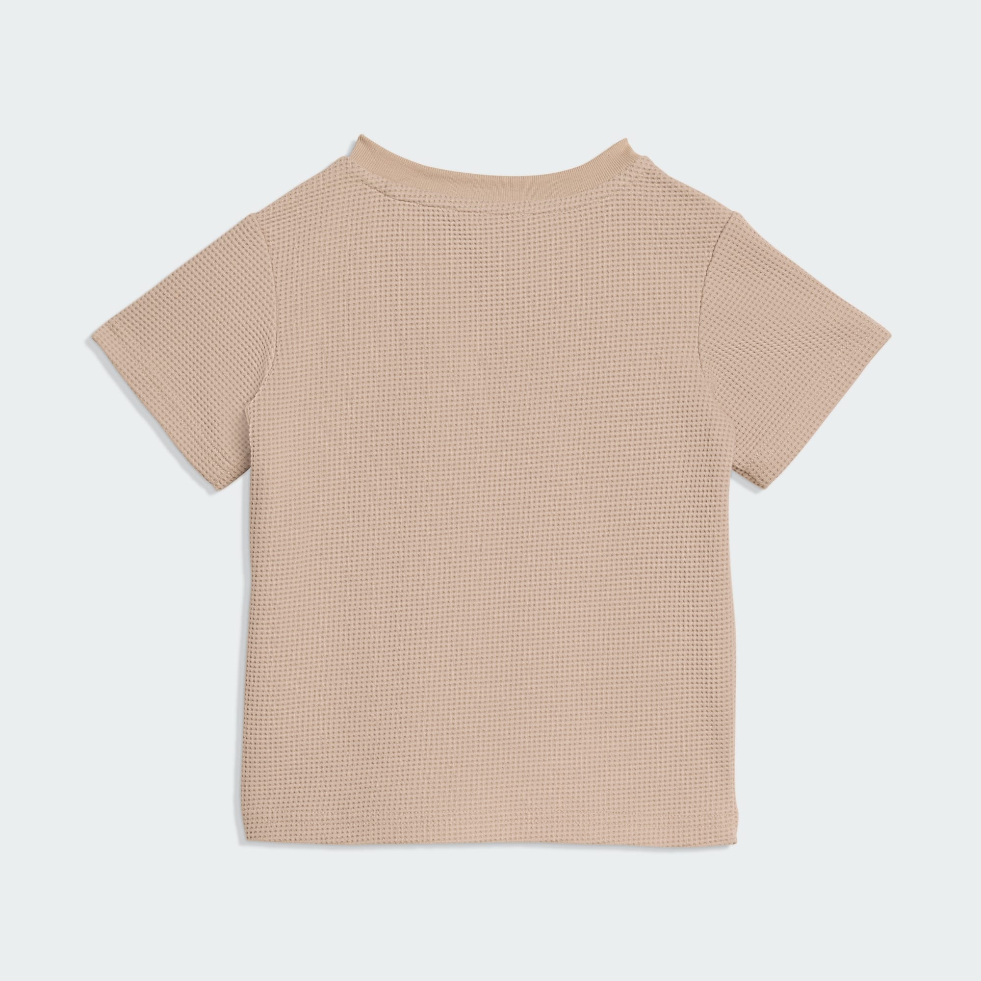Hier kommt das Regular Waffle Short T-Shirt Set, mit dem alltäglicher Komfort auf zeitlosen Stil trifft. Dieses Set ist für die Kleinsten gemacht und ergänzt verschiedene Looks mit Leichtigkeit. Das Doubleknit-Material fühlt sich weich auf der Haut an und bietet den ganzen Tag über Komfort. Das Oberteil hat eine normale Passform mit Rundhalsausschnitt und eine klassische Silhouette, die gut zu den mittelhohen Shorts passt. Der Kordelzug an der Taille sorgt für eine gute Passform, lässt aber trotzdem Bewegungsfreiheit beim Spielen oder bei Ausflügen. Mit dem kultigen adidas Stacked Logo, das auf der linken Brust und dem Bein gestickt ist, verleiht dieses Set dem Markenerbe einen modernen Twist. Dieses vielseitige Ensemble für die täglichen Abenteuer deines Kindes bietet Komfort und Stil gleichermaßen, ganz im Sinne von Originals.