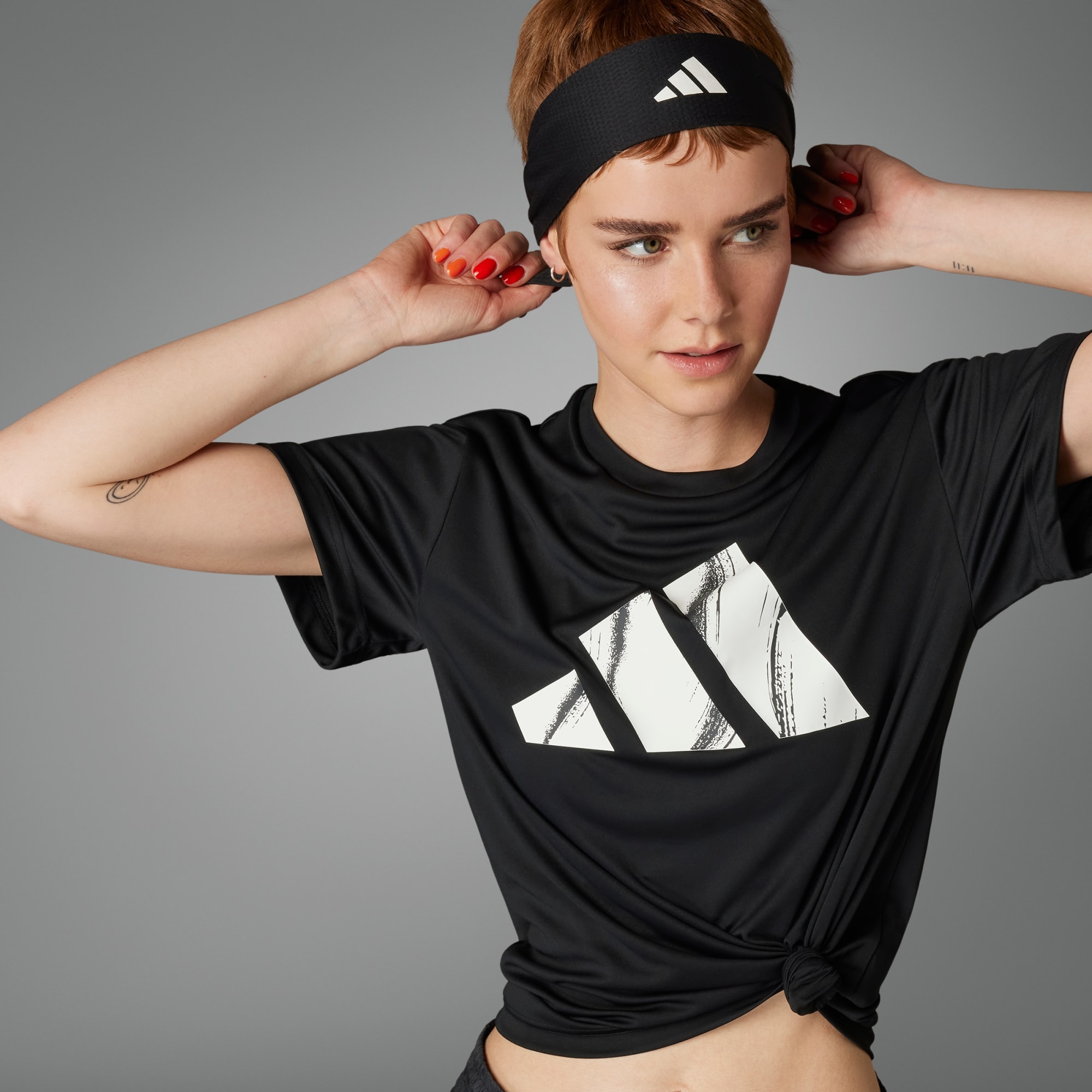 - Teilweise gummiertes 3-Streifen Logo mit Grafikprint