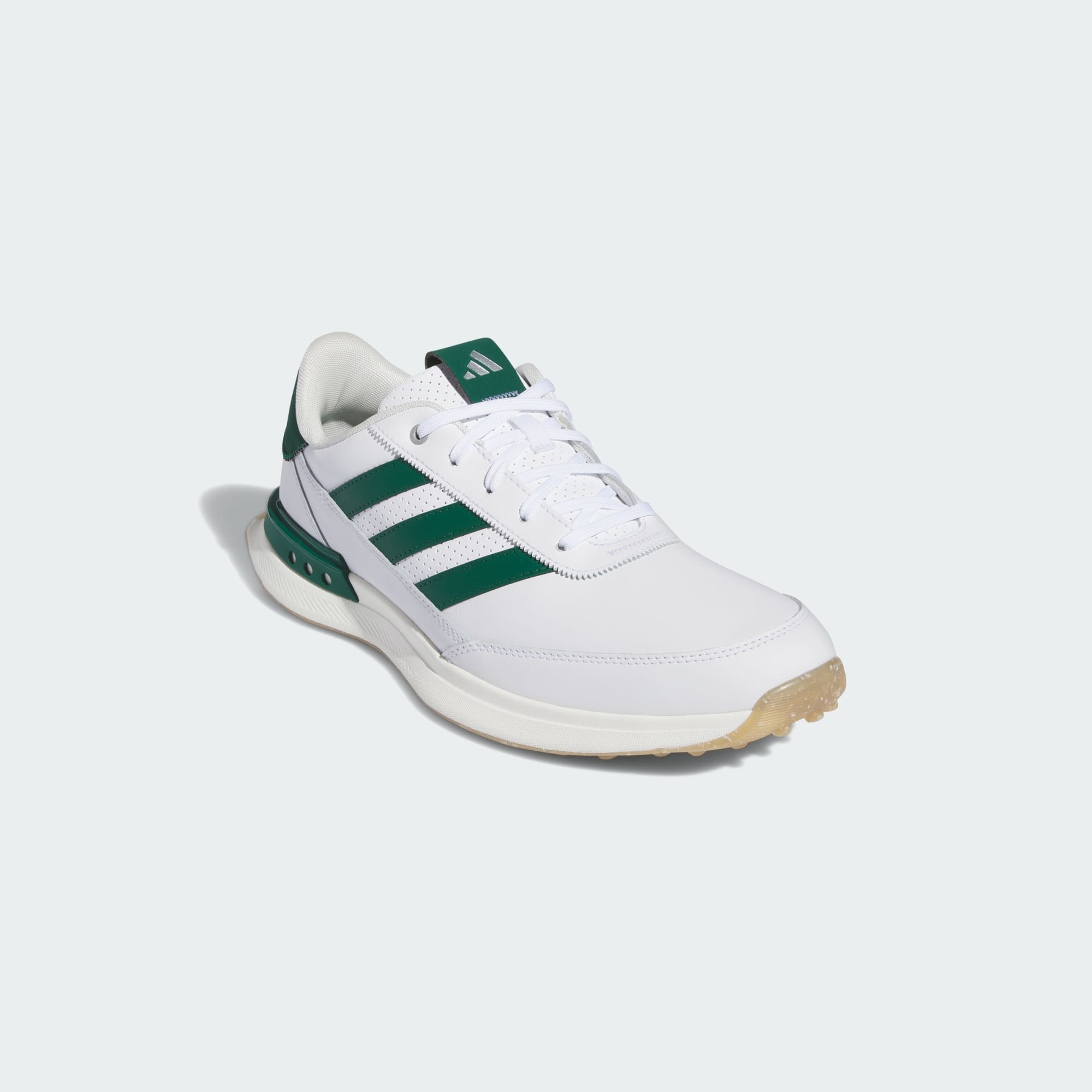 Ein Golfschuh mit Running-DNA und wasserdichtem Obermaterial aus Leder.
