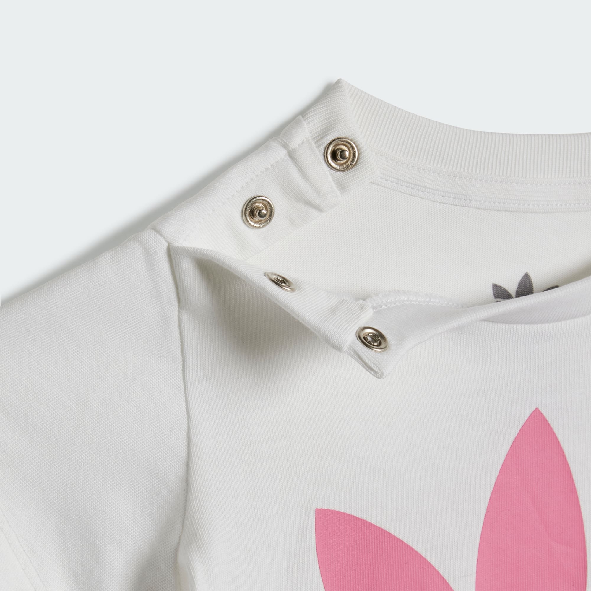 - Oberteil: gerippter Rundhalsausschnitt; Druckknopfverschluss an der Schulter