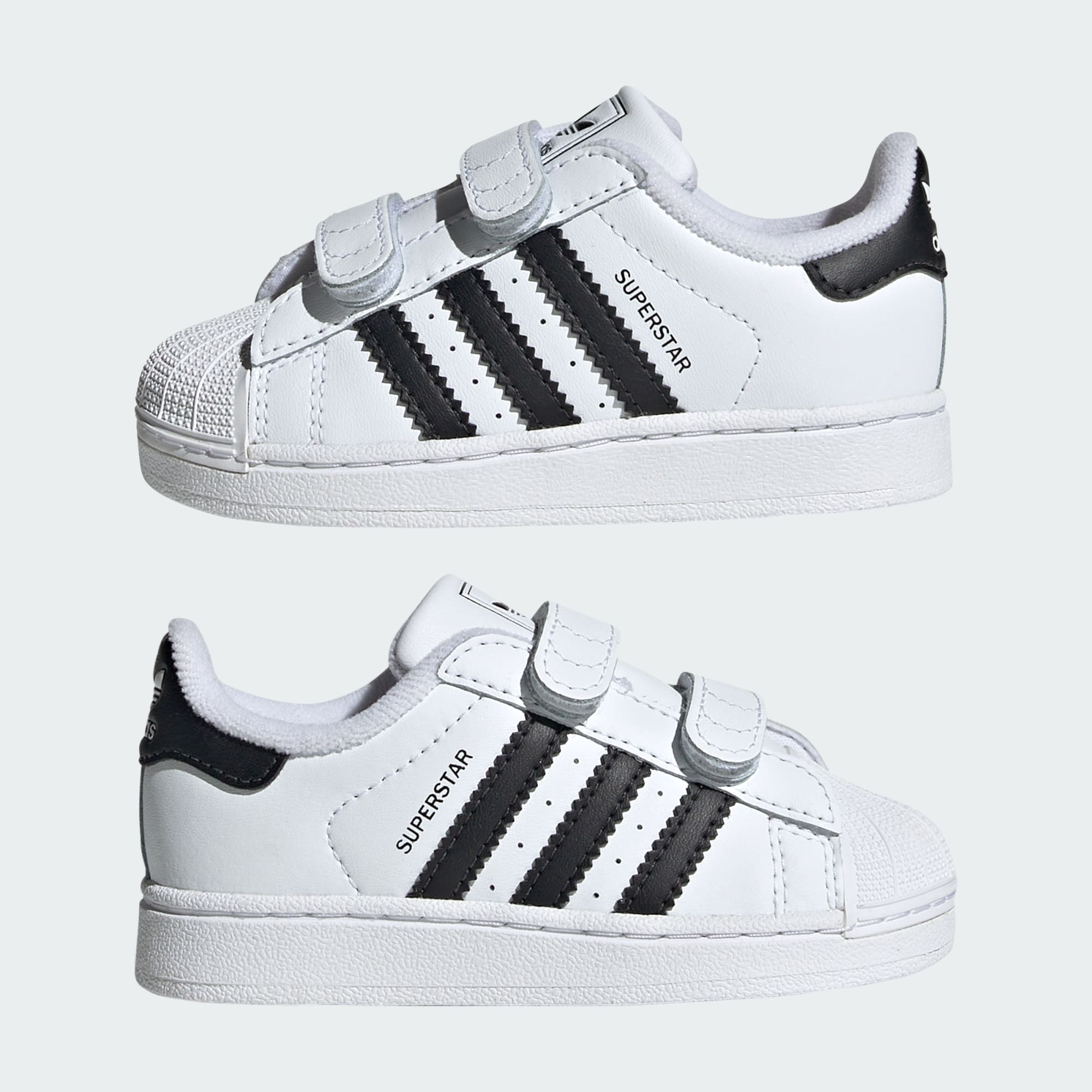 Dieser adidas Superstar Schuh für Babys und Kleinkinder ist der perfekte Allrounder. Dank der Klettverschlüsse lässt er sich kinderleicht an- und ausziehen, während das Obermaterial aus weichem Leder, die gepolsterte Zunge und die vorgeformte Einlegesohle für ein bequemes Tragegefühl sorgen. Dieser Sneaker für Babys und Kleinkinder setzt mit seiner Shell Toe, die so berühmt ist wie der Sneaker selbst, ein echtes Statement.