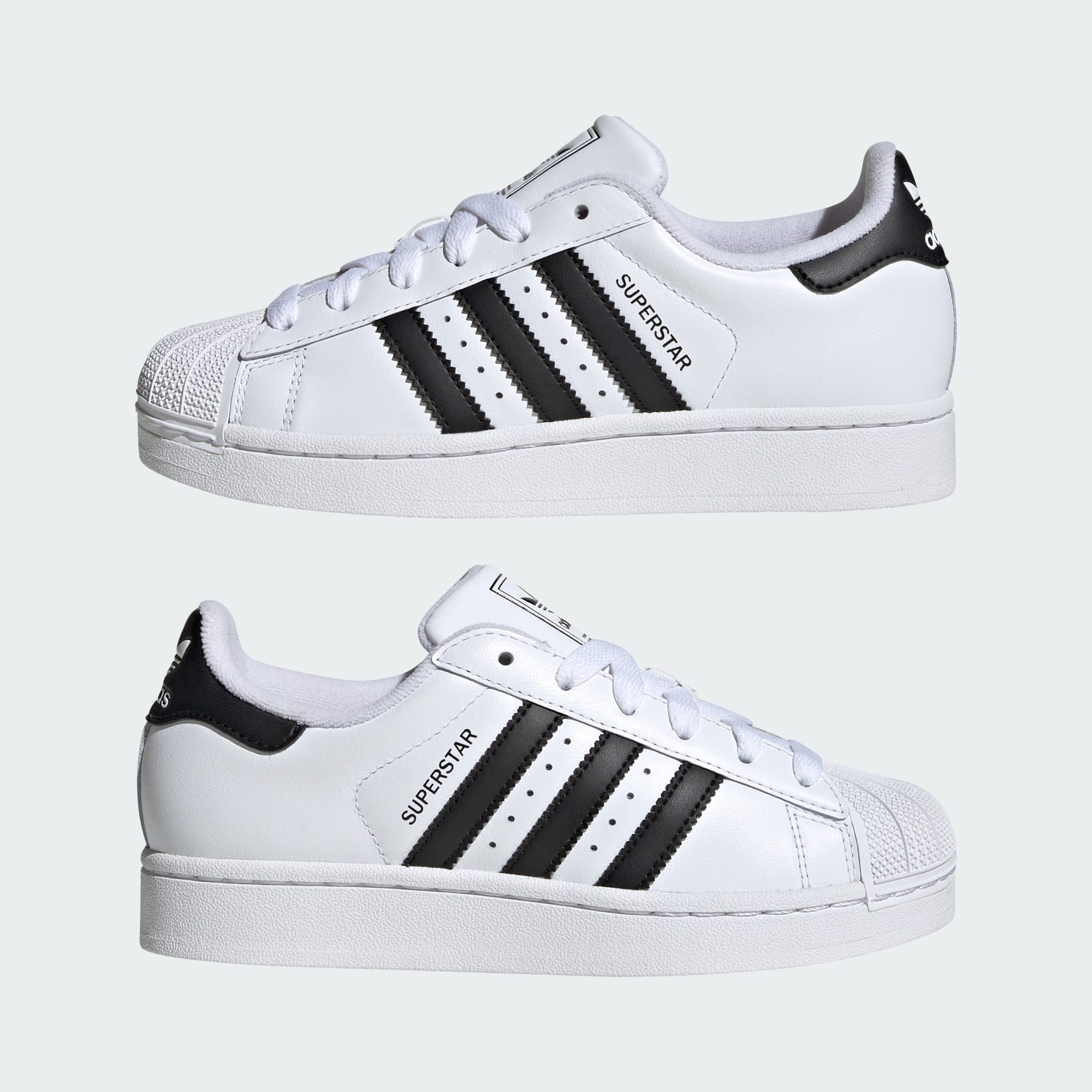 Geht einfach immer – der adidas Superstar II ist zurück, um die Straßen der Stadt mit seinem nicen Style zu erobern. Seit über 50 Jahren vereint der Sneaker mit der legendären Shell Toe und den gezackten 3-Streifen Sport und Style. Diese Version für Kinder und Teens kommt in cleanem, vielseitigem Schwarz-Weiß und sorgt mit seiner vorgeformten Einlegesohle und dem strukturierten Obermaterial aus Leder für lang anhaltenden Tragekomfort. Die stabile Gummi-Cupsohle mit klassischem Fischgrätprofil garantiert dir außerdem optimalen Grip. Kombiniert mit glänzenden Basketballshorts, Baggy Jeans oder Cargohosen wird ein angesagter Look draus.