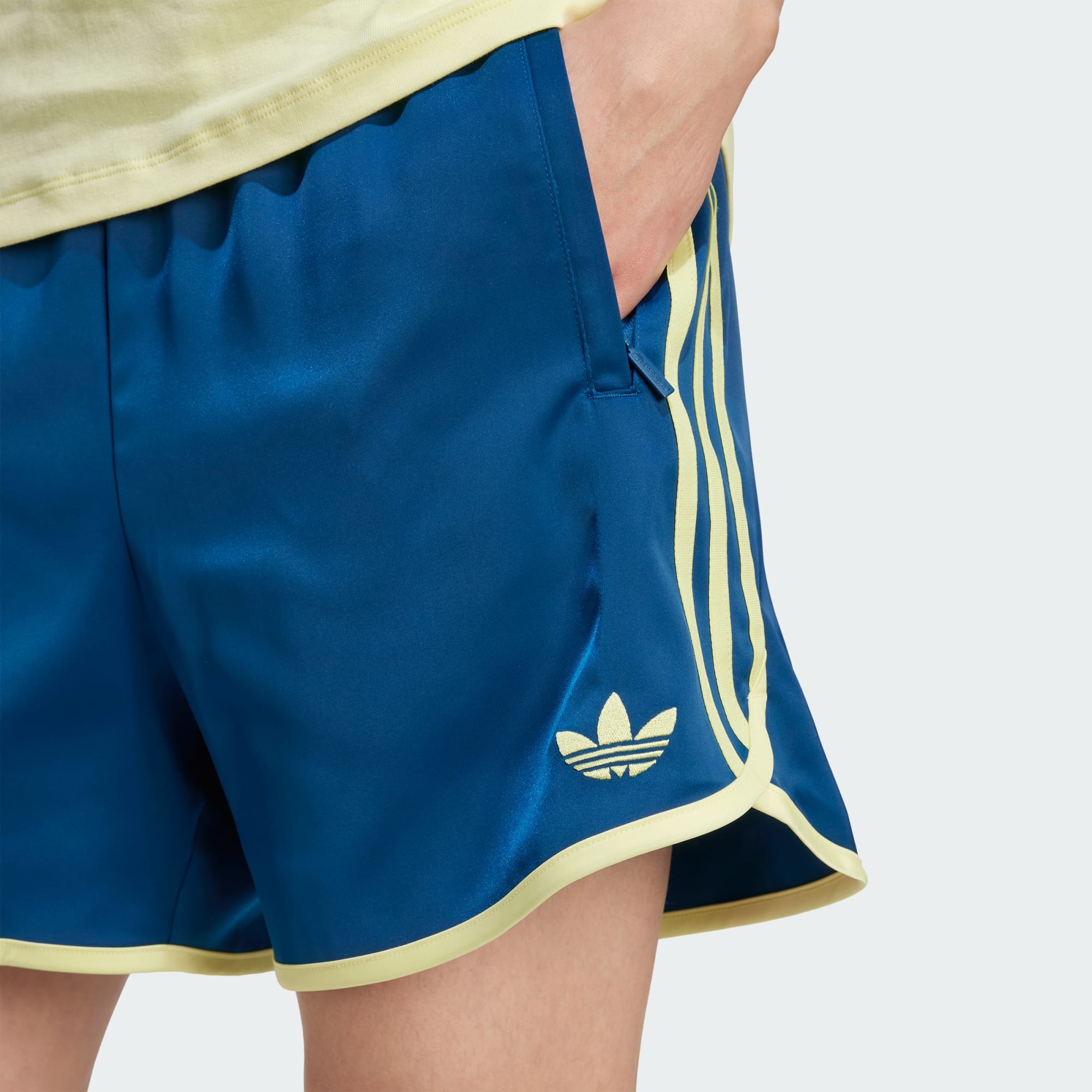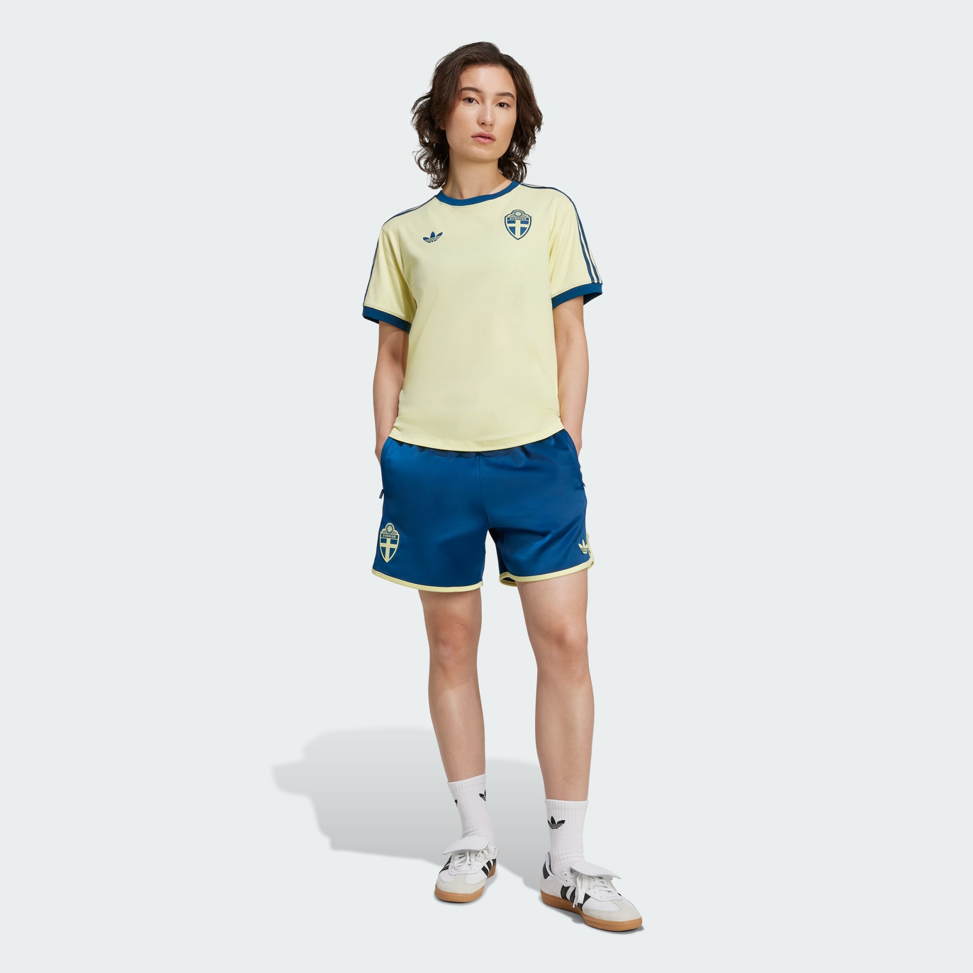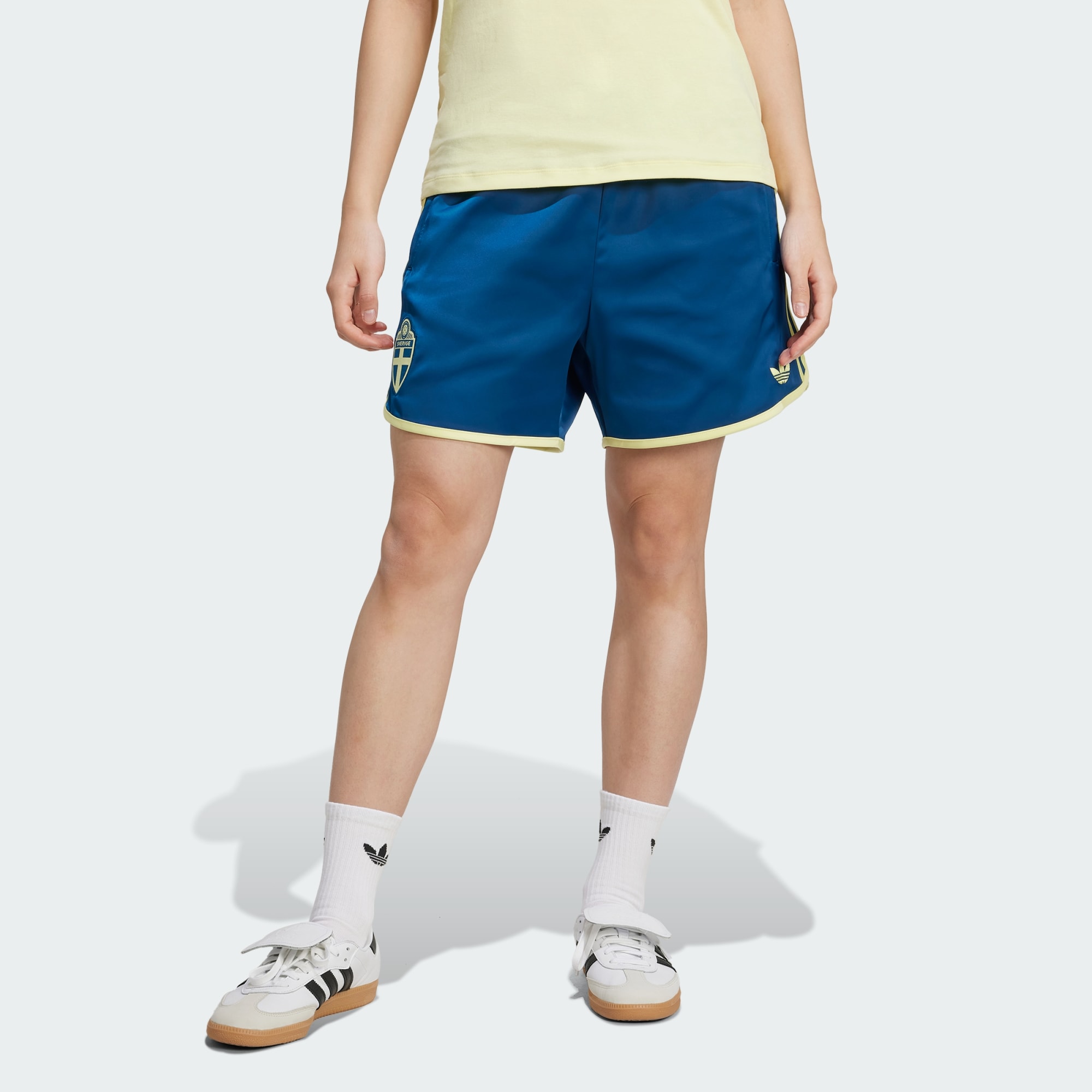 These adidas Sweden shorts are made from smooth satin fabric that's cut for a loose fit, so you stay comfortable in your football colours. Those pockets are perfect for stashing your keys and phone when you're following your side. Above the hem, a Trefoil and team badge show your sporty style.