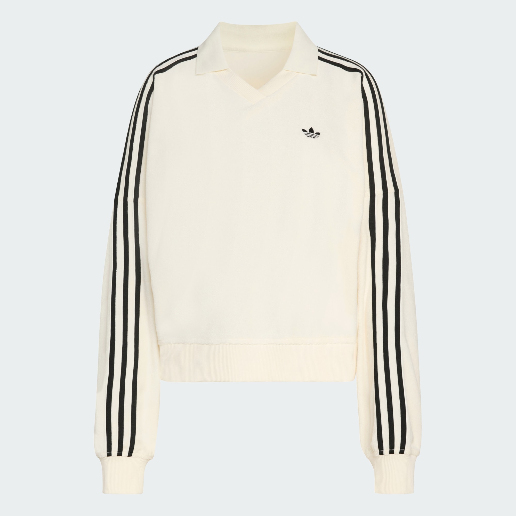 Sportliche Ästhetik trifft auf modernen Komfort mit dem Frottee V-Ausschnitt Langarm-Poloshirt. Dieses Kleidungsstück aus weichem Frottee bietet eine frische Interpretation einer legendären Silhouette. Die Oversize-Passform sorgt für einen entspannten Style, der sich sowohl zum Überziehen als auch zum Tragen als Einzelstück eignet. Mit seinem V-Ausschnitt bietet er ein schmeichelhaftes Dekolleté, das einen sportlichen Look ergänzt. Ganz gleich, ob du dich mit Freunden triffst oder ein entspanntes Wochenende genießt, mit diesem Poloshirt bist du bestens ausgerüstet. Wir verkörpern den adidas Originals Spirit mit lässigen, vielseitigen Stücken, die ein Statement setzen.