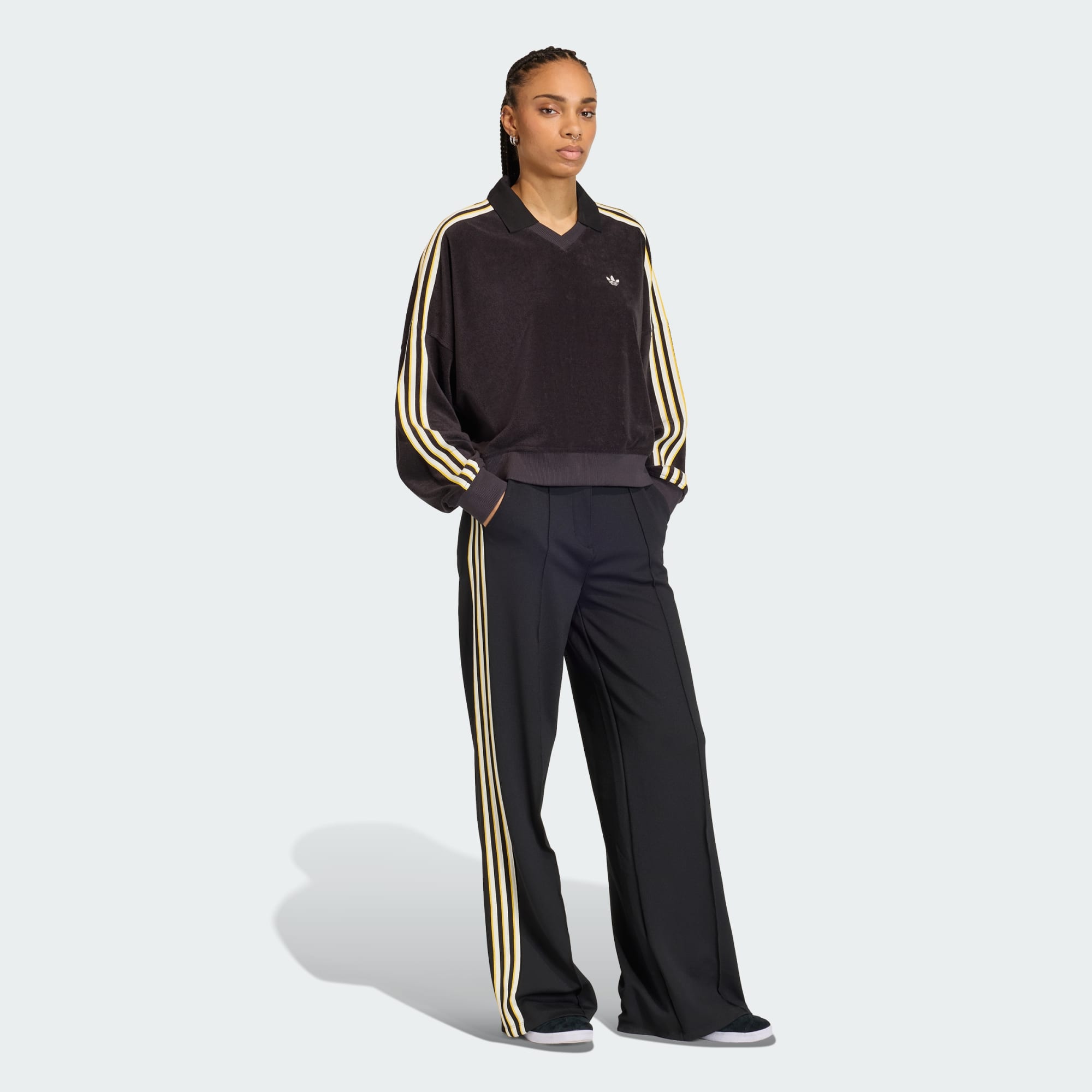 Sportliche Ästhetik trifft auf modernen Komfort mit dem Frottee V-Ausschnitt Langarm-Poloshirt. Dieses Kleidungsstück aus weichem Frottee bietet eine frische Interpretation einer legendären Silhouette. Die Oversize-Passform sorgt für einen entspannten Style, der sich sowohl zum Überziehen als auch zum Tragen als Einzelstück eignet. Mit seinem V-Ausschnitt bietet er ein schmeichelhaftes Dekolleté, das einen sportlichen Look ergänzt. Ganz gleich, ob du dich mit Freunden triffst oder ein entspanntes Wochenende genießt, mit diesem Poloshirt bist du bestens ausgerüstet. Wir verkörpern den adidas Originals Spirit mit lässigen, vielseitigen Stücken, die ein Statement setzen.