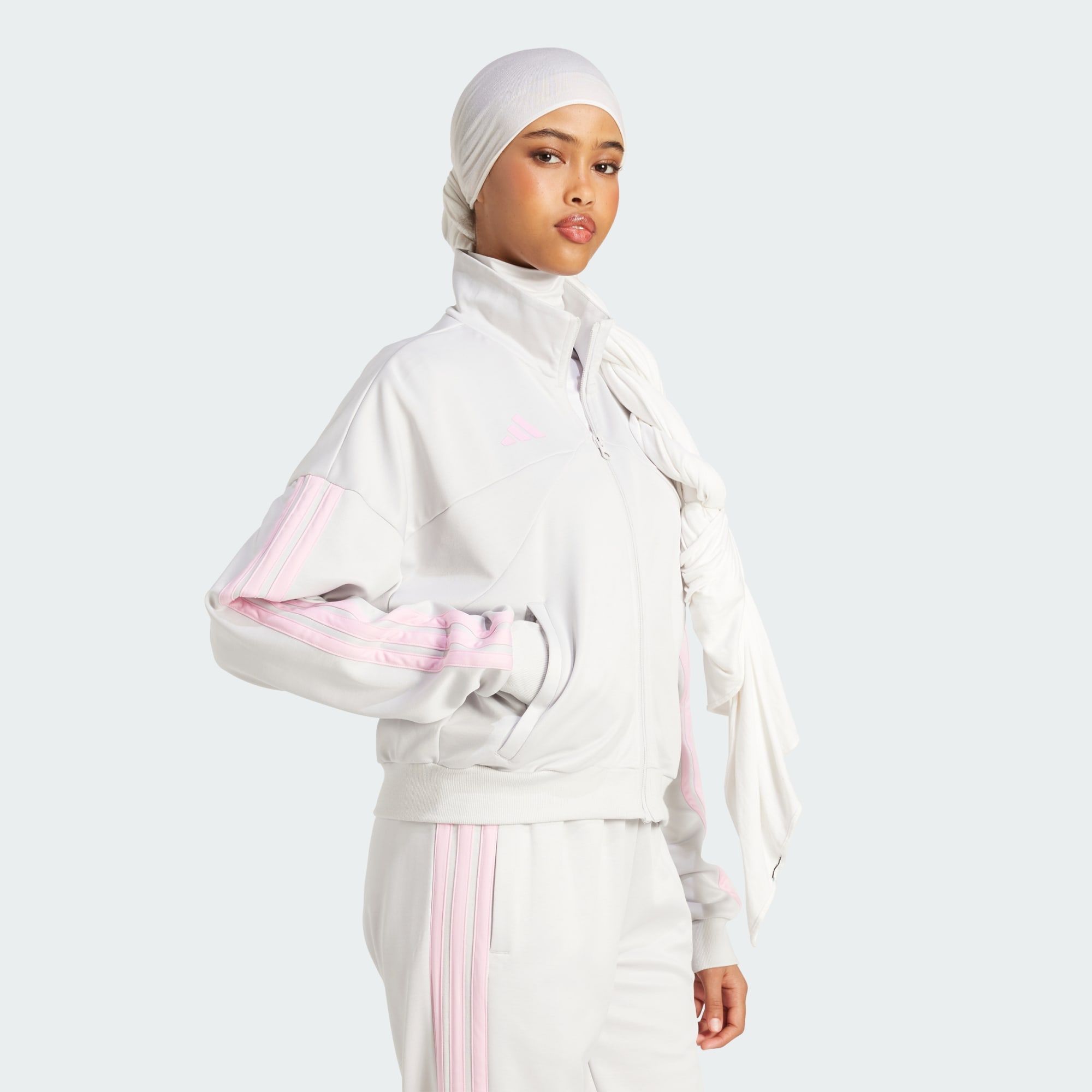 Dieses moderne Track Top ist teilweise aus einem Mix aus recycelten und erneuerbaren Materialien hergestellt.