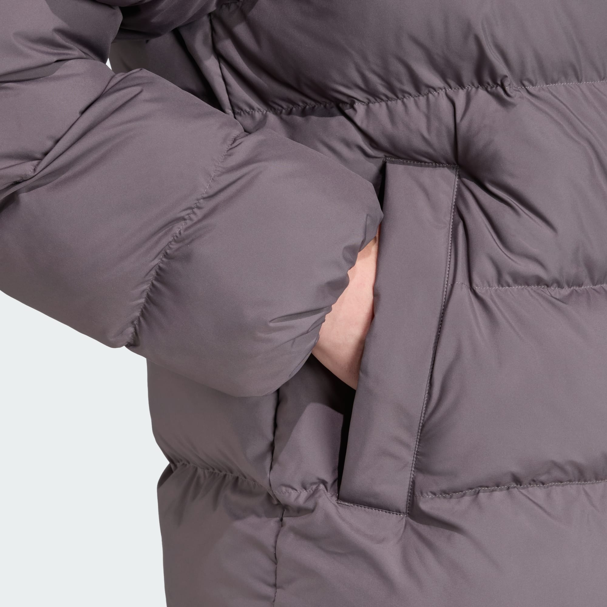 Wenn die Temperaturen sinken, kommt diese stylishe adidas Puffer-Jacke mit Kapuze wie gerufen. Sie ist aus strapazierfähigem, gewebtem Material und vereint sportlichen Retrostyle mit minimalistischer Ästhetik. Außerdem halten der durchgehende Reißverschluss, der hohe Kragen und die elastischen Details Wind und Wetter vom Eindringen ab. Und kalte Hände sind in den Seitentaschen bestens aufgehoben.