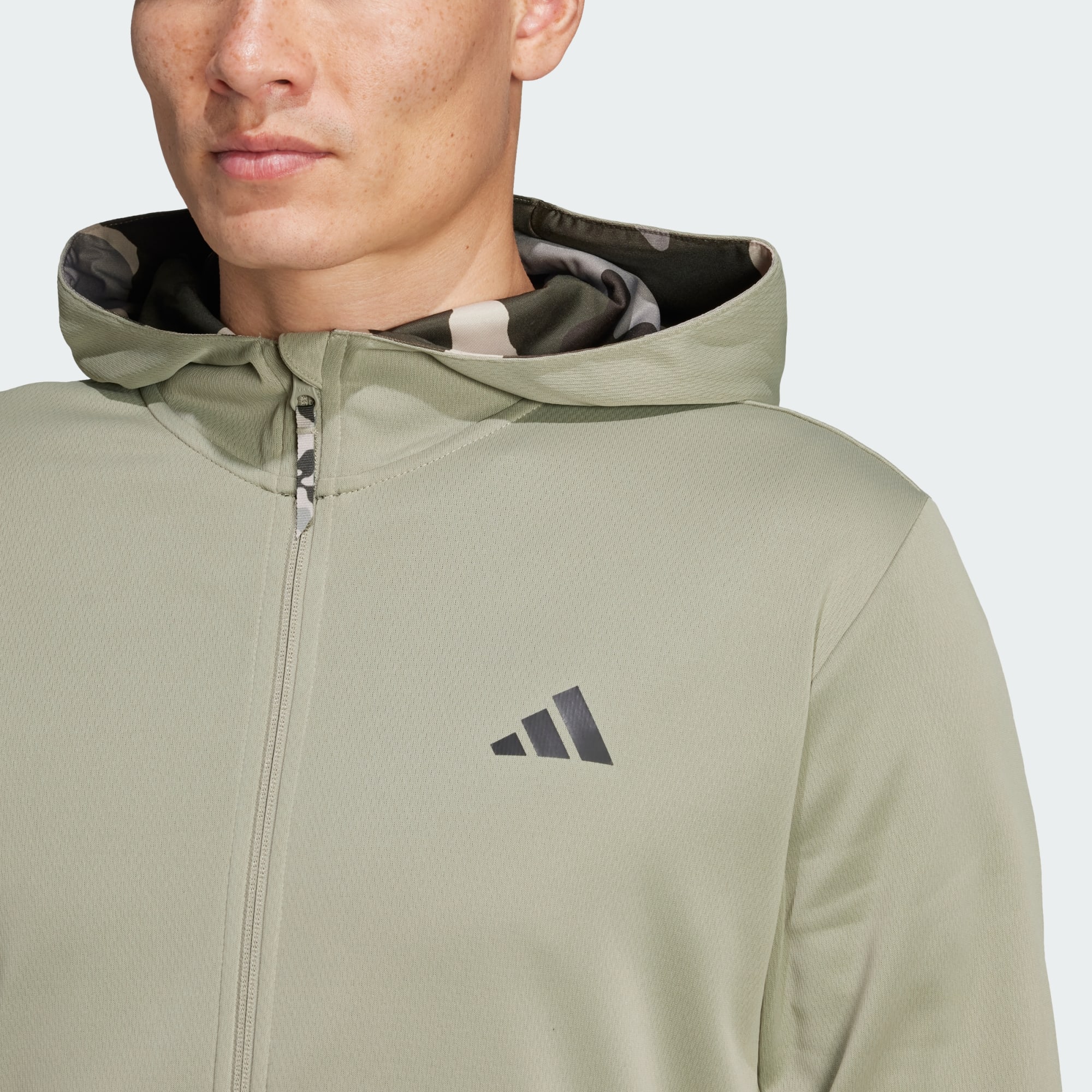Egal, ob beim Krafttraining oder Joggen, mit dieser adidas Kapuzenjacke kannst du dich voll und ganz auf dein Training konzentrieren. Die AEROREADY Technologie hält dich angenehm trocken – keine Ablenkung, nur Komfort. Außerdem zeigt sich das typische 3-Streifen Detail in Camouflage-Optik und verpasst dem Piece damit einen stylishen Touch. Dieses Produkt ist mit 100 % recycelten Materialien hergestellt. Die Wiederverwendung bereits vorhandener Materialien hilft uns dabei, Müll zu reduzieren, unsere Abhängigkeit von nicht erneuerbaren Ressourcen einzuschränken und den CO2-Fußabdruck unserer Produkte zu verringern.