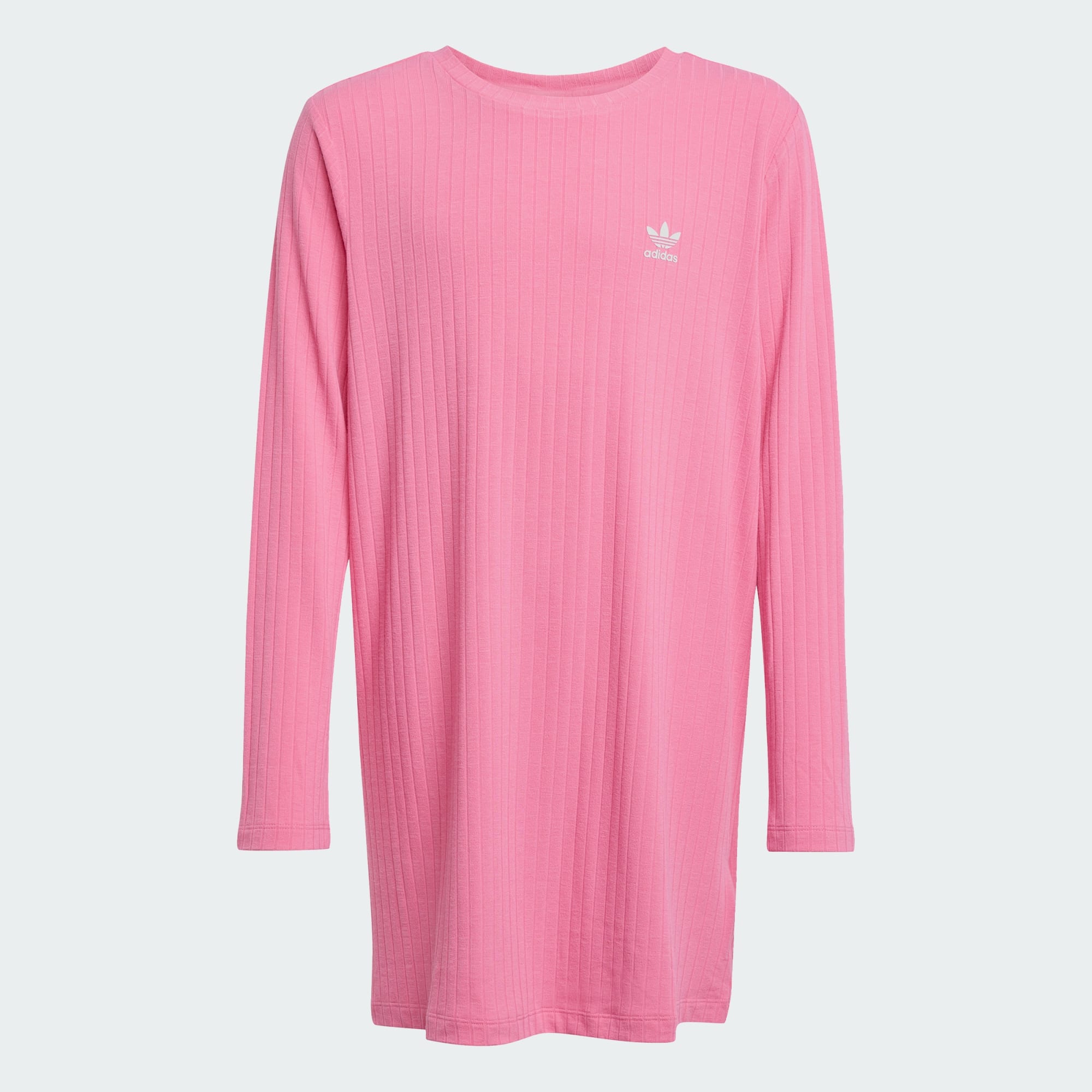 Langärmeliges Kleid, mit dem du echt stylo aussiehst. Bei diesem Kleid für Kinder und Teens dreht sich alles um klares Design und eine sleeke Silhouette. Das gerippte Material fühlt sich weich auf der Haut an und das Trefoil Logo erinnert an das adidas Erbe. Ob in der Schule oder am Wochenende, mit diesem Kleid fährst du immer gut.