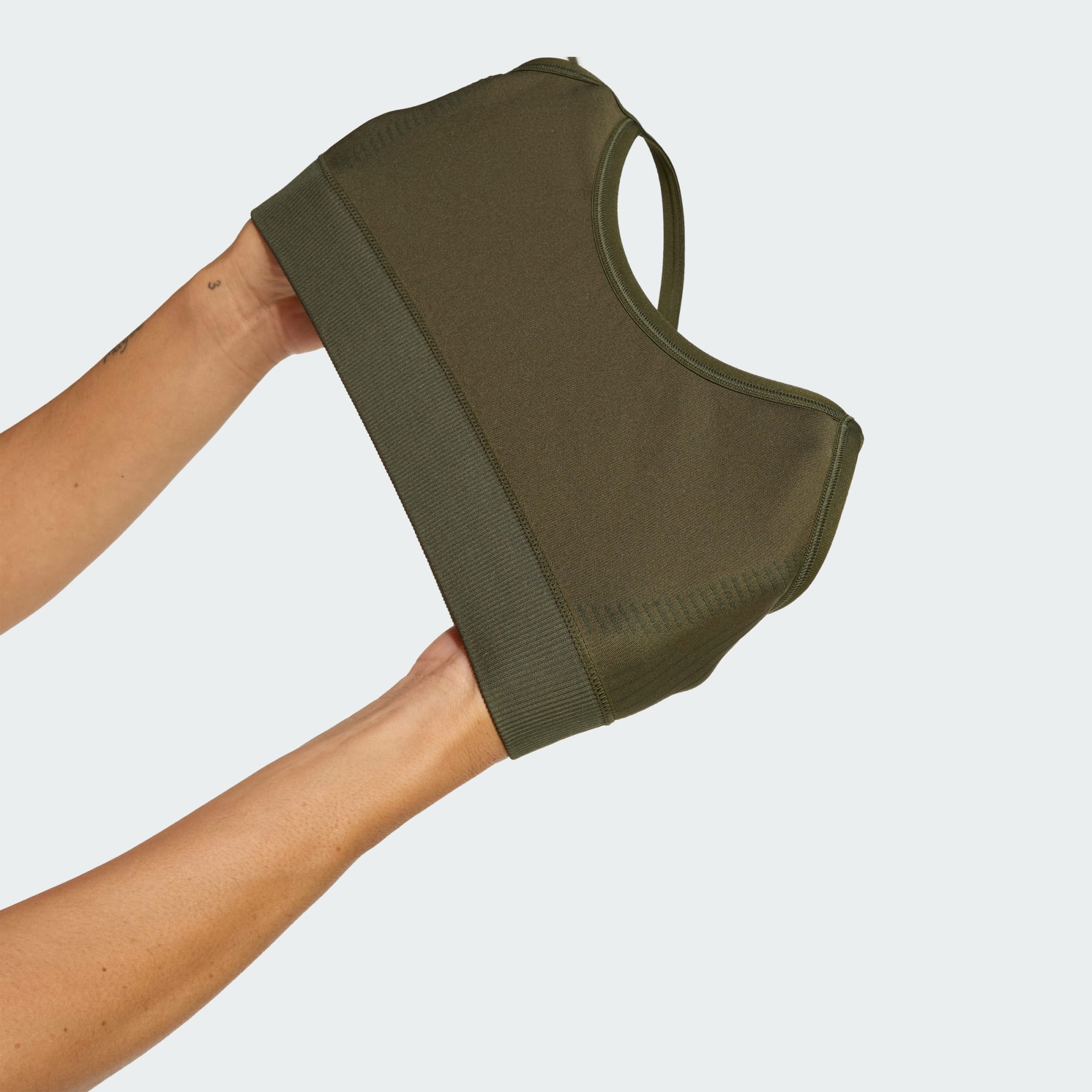 Für ein angenehmes Tragegefühl im Fitnessstudio und außerhalb sorgt dieser weiche, nahtlose und leicht stützende Workout-BH. Die nahtlose Strickkonstruktion bewegt sich mit dir bei Yoga, Pilates und anderen Low-Impact-Workouts. Klassische BH-Riemen verteilen das Gewicht auf deine Schultern und entlasten so deinen Trapezmuskel bei der Bewegung. CLIMACOOL leitet Feuchtigkeit von der Haut ab und sorgt für ein kühles und trockenes Tragegefühl – keine Ablenkung, nur Performance. CLIMACOOL Materialien ermöglichen ein schnelles und effizientes Feuchtigkeitsmanagement. Die schnell trocknenden Fasern geben dir ein frisches Gefühl auf der Haut.